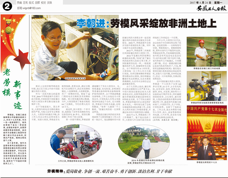 安徽工人日報——李朝進:勞模風采綻放非洲土地上